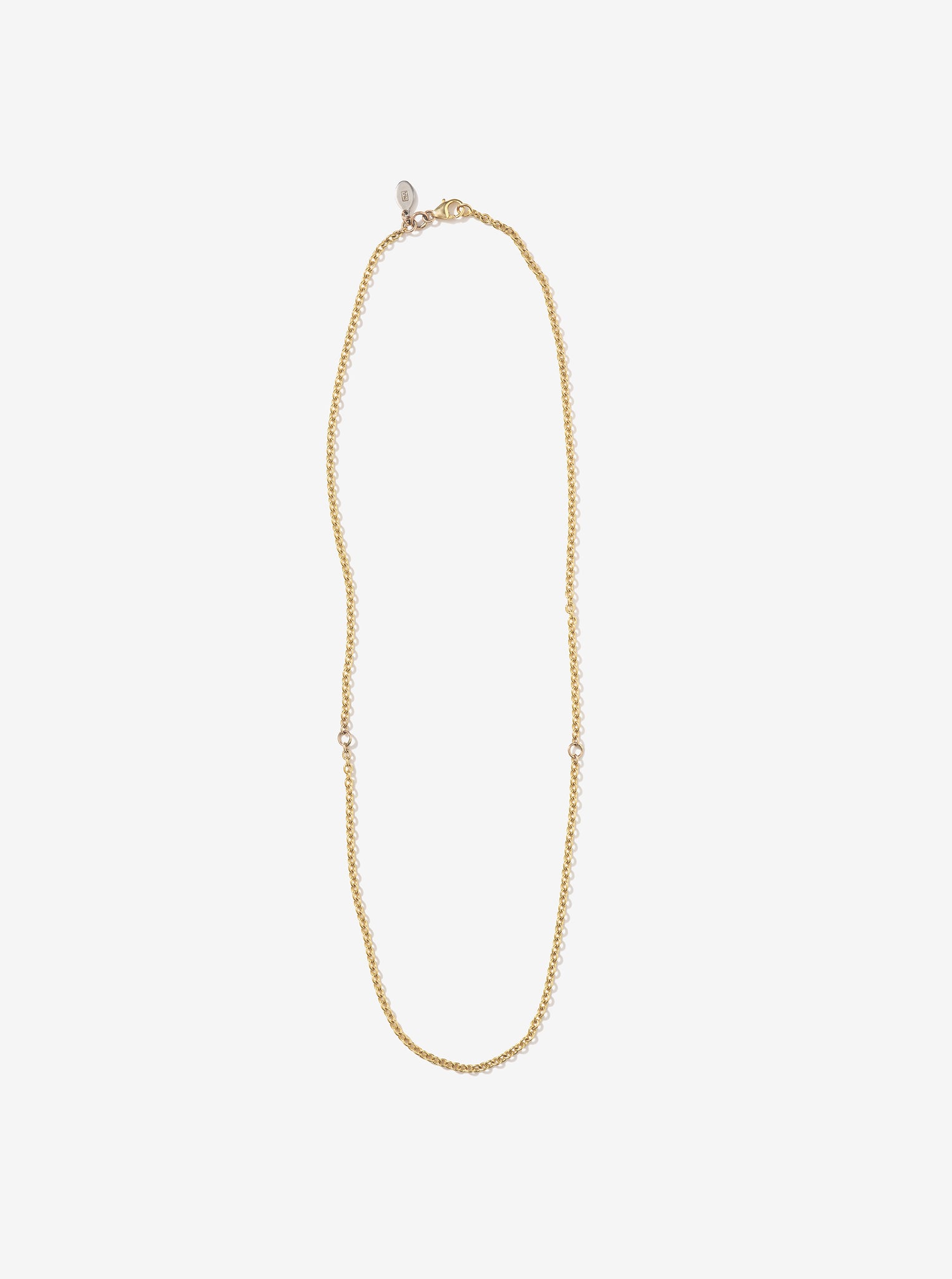 This small chunky round cable necklace is crafted in 14K gold and accented with two gold circle links for a sculptural, statement-making touch. At 18 inches, it sits perfectly for layering with other necklaces or wearing solo as a bold everyday essential.